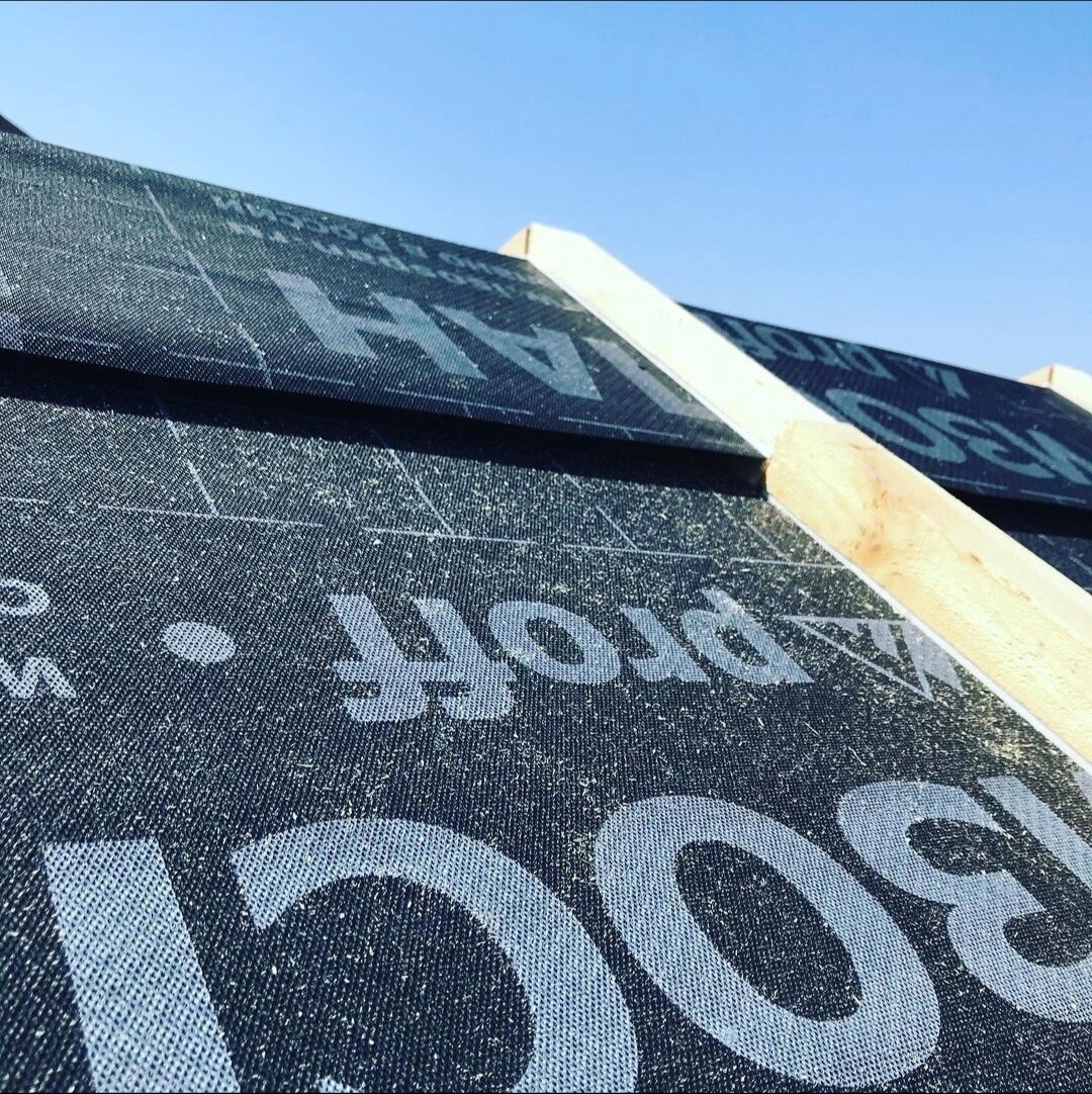- Подготовка: Лента наклеивается на поверхность контрреек, которые будут монтироваться вертикально к стропилам.