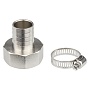 Применяется для подключения садовых шлангов к водопроводной системе. Подключение шланга производится через соединение "елочка". Для большей надежности подсоединенный шланг необходимо затянуть при помощи обжимного хомута.