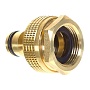 Быстросъемное соединение используется для монтажа соединителя с водопроводной трубой или краном. Позволяет соединить все элементы поливочной цепочки – кран, шланг, терминал и т. д. Штуцер выполнен из латуни и имеет длительный срок службы. С помощью штуцера осуществляется легкий монтаж и герметичное соединение. Изделие имеет 2 варианта резьбы – 1" или 3/4"