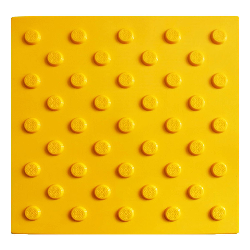Тактильная плитка выполнена в соответствии с ГОСТ Р 52875-2018, изготовлена из высококачественного полиуретана или ПВХ, твёрдостью не более 85 единиц по Шору по таблице А. Материал является высокопрочным и невосприимчивым к перепадам температур, обладает относительными грязеотталкивающими свойствами, поэтому плитка отлично подходит для укладки как внутри, так и снаружи помещений. Тактильная плитка информирует человека с нарушениями зрения о преодолимом препятствии на пути следования (дверной проём, лестница). Для обеспечения контраста с подстилающей поверхностью, а также для обеспечения оптимальных условий восприятия цвета слабовидящим человеком, тактильная плитка имеет яркий цвет поверхности (из коллекции RAL). Плитка предназначена для монтажа при помощи клея уже на имеющиеся напольное покрытие