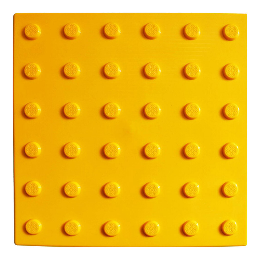Тактильная плитка выполнена в соответствии с ГОСТ Р 52875-2018, изготовлена из высококачественного полиуретана или ПВХ, твёрдостью не более 85 единиц по Шору по таблице А. Материал является высокопрочным и невосприимчивым к перепадам температур, обладает относительными грязеотталкивающими свойствами, поэтому плитка отлично подходит для укладки как внутри, так и снаружи помещений. Тактильная плитка информирует человека с нарушениями зрения о преодолимом препятствии на пути следования (дверной проём, лестница). Для обеспечения контраста с подстилающей поверхностью, а также для обеспечения оптимальных условий восприятия цвета слабовидящим человеком, тактильная плитка имеет яркий цвет поверхности (из коллекции RAL). Плитка предназначена для монтажа при помощи клея уже на имеющиеся напольное покрытие