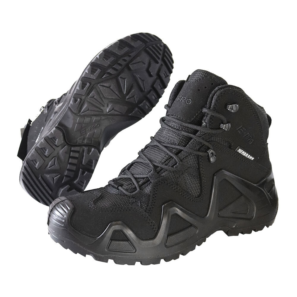 Спецобувь E-PRO SPECIAL черные Верх обуви – микрофибра Серия обуви E-PRO—это одна из самых популярных в туристической и тактической обуви, используемая походниками, альпинистами, спортсменами, военными и сотрудниками правоохранительных органов. Линейка E-PRO Special представлена целым семейством моделей, отличающихся по цвету, высотой берца, а также наличием мембраны. Основной материал изготовления—высококачественная замша со вставками из кордуры. Наличие подкладки из мембраны делает обувь непромокаемой и одновременно дышащей, способной отводить испарения с поверхности стопы. Подлитой носок обеспечивает защиту от повреждений. Защитный рант с выборками для облегчения веса проходит по всему периметру и создает узнаваемый образ. Кроме основных функций рант дает дополнительное сцепление с поверхностью, например, при движении вдоль склона. Высота среднего ботинка 14.5 см, этого хватает для отличной фиксации голеностопа. Все детали прошиты двойным швом, все швы сделаны крайне аккуратно. На пятке есть петелька облегчающая надевание. Подошва имеет многослойную структуру. Промежуточный слой из полиуретана придает высокие амортизирующие свойства; ходовой слой из резины на основе натурального каучука делает подошву более износостойкой и способствует хорошему сцеплению с грунтом и другими плоскостями. Язычок с защитным клапаном исключает просачивание воды и попадание посторонних предметов внутрь. Подлитой носок, обеспечивает его защиту от повреждений В зимнем исполнении утеплитель –Thinsulate. Рекомендуемая температура использования до -20 °C