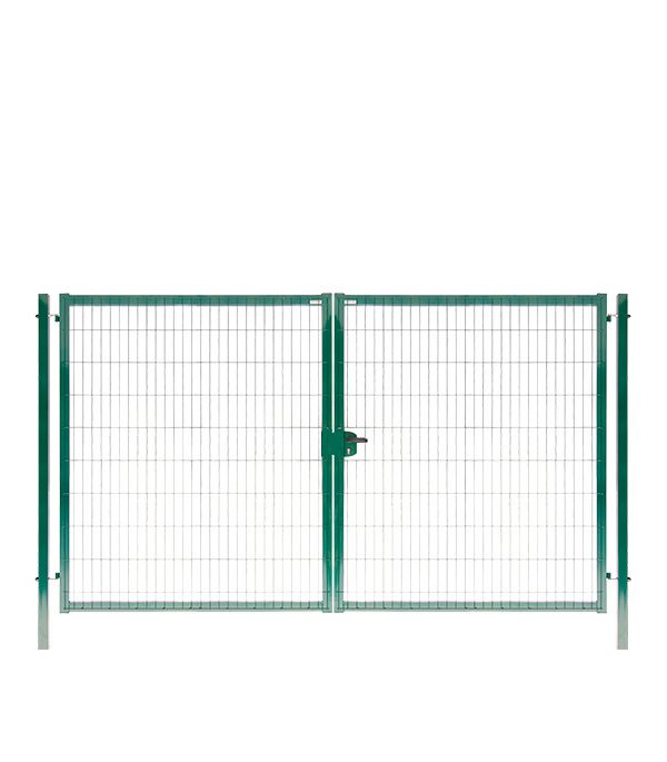 Ворота распашные с панелью Medium и столбами 3,5х2,03 м зеленые RAL 6005