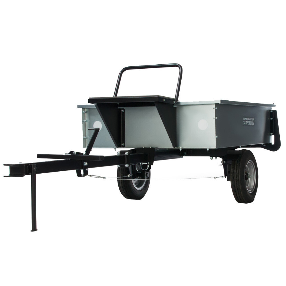 Прицеп для мотоблока оцинкованный в упаковке предлазначен для мотоблоков Мобил К МКМ-3, МКМ-4; Нева МБ-2, МБ-23; МБ-1 Ока, Каскад, Луч. Прицеп имеет съемный задний борт и функцию опрокидывания (самосвала). Оснащен сиденьем.