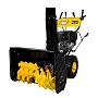 Снегоуборщик Huter SGC 8000 предназначен для очистки больших территорий парковочной и гаражной зоны от снежных заносов. Четырехтактный двигатель мощностью 11 л.с. обеспечивает высокую скорость и качество работы. Запуск осуществляется с помощью ручного или электрического стартера, работающего от сети 220 В. Механическая коробка передач обеспечивает переключение 6 передних и 2 задних скоростей. Металлический ковш высотой 54 см имеет ширину захвата 70 см. На каждой оси расположено по 3 фрезы. Прочные металлические лопасти способны измельчать обледеневший снежный слой. Снегоотбрасывательный желоб с помощью рычага поворачивается на 190°. Дальность выброса снега регулируется до 15 м. Вместительный топливный бак объемом 6,5 л обеспечивает возможность длительной непрерывной работы. Самоходный агрегат минимизирует усилия по его эксплуатации. Бензиновый снегоуборщик оснащен фарой для освещения территории, что позволяет использовать его в любое время суток. Надувные камерные колеса сохраняют проходимость в любых погодных условиях. Глубокий зимний протектор шин обеспечивает надежное сцепление с дорожной поверхностью. Функция подогрева рукояток делает использование техники более комфортным. Взаимная блокировка рукояток позволяет управлять агрегатом одной рукой. Металлические ограничители по краям ковша защищают хрупкие поверхности от повреждений.