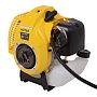 Бензиновый триммер – оптимальный вариант для приусадебного участка. Это модель средней мощности (1900 Вт), которая отлично справляется с высокой травой и молодой порослью на даче. Благодаря двухтактному бензиновому двигателю триммер может работать полностью автономно, не привязываясь к сети. Полупрозрачный бак с топливом позволяет следить за его количеством. Топливная смесь состоит из бензина и специальногомасла для двухтактных двигателей. Пропорция указывается производителем масла. Модель поставляется со стандартной катушкой и трехлепестковым диском. Ремень «Стандарт» позволяет переносить триммер на одном плече во время работы. Триммер компактен и удобен в управлении, поэтому подходит для работы в труднодоступных местах. Благодаря системе легкого старта его может без труда завести даже неопытный пользователь. Кнопки и другие элементы управления расположены на рукояти, что упрощает работу с бензотриммером.