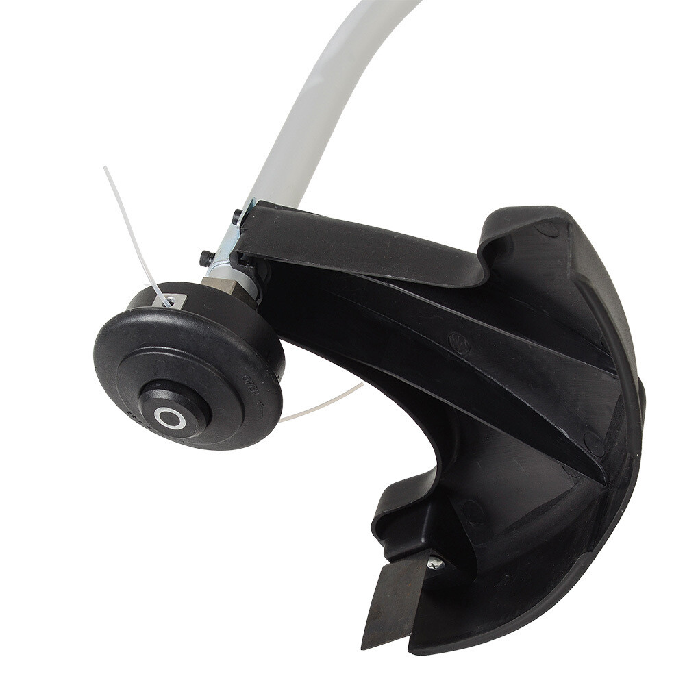 Электротриммер способен аккуратно подстригать газоны, косить траву возле кустарников и деревьев. Изогнутая штанга упрощает работу в труднодоступных местах. Модель получила электродвигатель, мощностью 1 кВт, с воздушным охлаждением. Верхнее расположение мотора защищает его от возможного попадания воды при кошении влажной травы. Удобная D-образная штанга упрощает работу и позволяет обрабатывать труднодоступные места. Специальный кожух защищает пользователя от выброса отрезков травы и мелкого кустарника. Этот электрический триммер имеет компактные размеры и складную штангу, которая упрощает перевозку инструмента и экономит место при его хранении. В комплекте идет стандартный плечевой ремень на одно плечо.