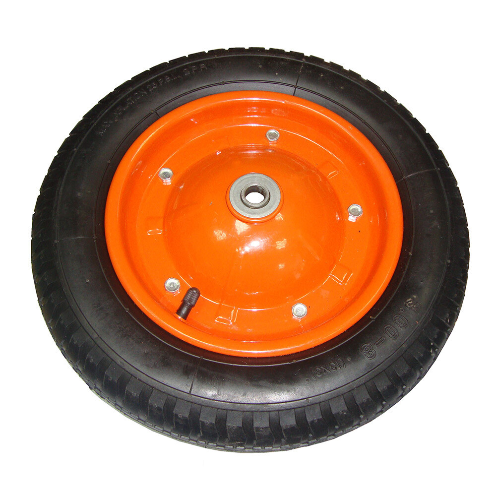 Колесо к тачке с пневматической камерой с подшипником используется как запасная часть для тачки. Подходит к двухколесной тачке. Аббревиатура – 3.25/3.00-8. Размер внутреннего подшипника – 16 мм.