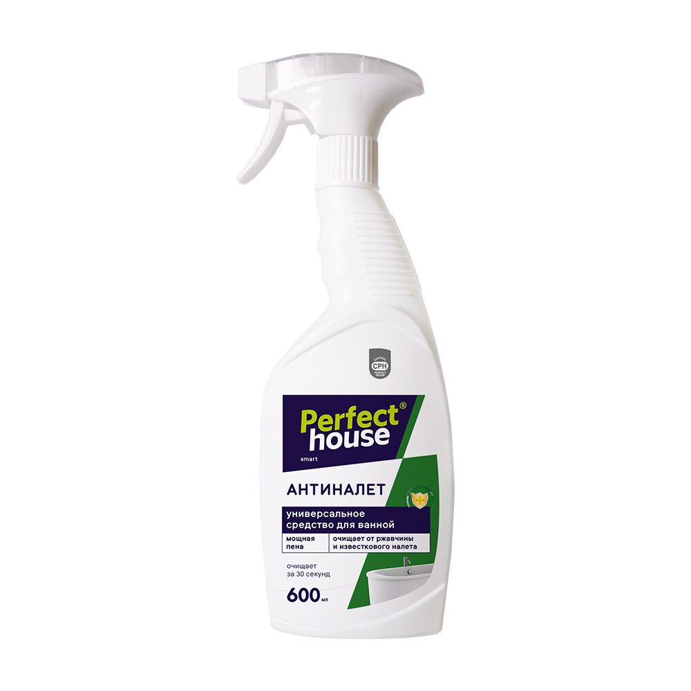 Универсальное чистящее средство Perfect House идеально для уборки ванной комнаты, удаления известкового налета, ржавчины. Спрей-антиналет предназначен для чистки всех видов ванн, душевых кабин, сантехники, плитки, пластиковых шторок. Спрей-очиститель содержит активные чистящие вещества, которые помогают максимально эффективно справиться с известковым налетом, коррозией и другими солевыми отложениями.