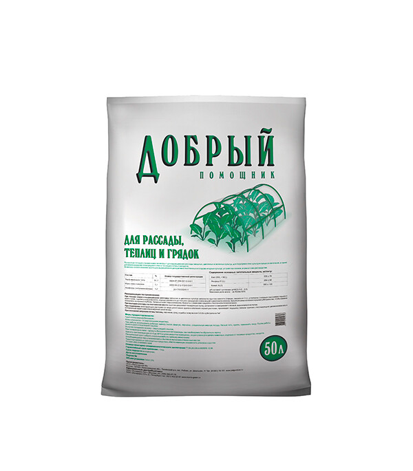 Почвогрунт Добрый помощник для рассады теплиц и грядок 50 л