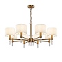 Предназначена для освещения внутренних помещений. Серия Lino – это элегантная интерпретация современной классики. Металлическая арматура светильников окрашена в оттенок латуни. Белоснежные тканевые абажуры мягко приглушают световой поток. Симметричность элементов создает легкий образ, а декор – прозрачные акриловые трубки – подчеркивает невесомость композиции. Серия предназначена для комплексной подсветки интерьера, включает как общие, так и зональные источники света – подвесную люстру на 6 и 8 плафонов, одиночный подвес, настольную лампу, торшер и бра. Широкий выбор позволяет сформировать разнообразные световые сценарии в обстановках, оформленных в стиле неоклассика, модерн, ар-деко, эклектика. Лампы в комплект не входят.