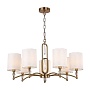 Предназначена для освещения внутренних помещений. Облегченная конструкция в форме арки без традиционного центрального стержня. Металлическая арматура в цвете латунь. Тканевые матовые абажуры белоснежного оттенка завершают цельный образ и служат естественным рассеивателем для источников света. Используйте светильник в гостиных, спальнях, столовых и прихожих, выполненных в стиле неоклассика, классика, ар-деко, модерн. Широкая линейка предлагает различные типы светильников для комплексной зональной и основной подсветки – подвесные люстры на 12, 8, 7 и 5 плафонов, бра, настольную лампу и торшер. Лампы в комплект не входят.