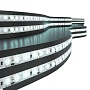 Светодиодная лента 12 В используется для декоративно-интерьерной подсветки в помещениях с повышенной влажностью (кухни, ванные комнаты), а также на улице для установки под навесом, оформления рекламных вывесок, для создания световых композиций в современных интерьерах и экстерьерах. Лента поставляется в рулоне с припаянным выводом проводов с цветовым обозначением для удобного подключения. Длина ленты составляет 5 м. Светодиодную ленту можно укоротить, отрезав нужную часть в местах для реза, а при необходимости удлинить, используя коннекторы. Гибкость ленты и надежная клеевая основа позволяют устанавливать ленту на различные поверхности. Для подключения светодиодной ленты к сети питания используются понижающие трансформаторы, преобразующие 220 В переменного тока в 12 В постоянного тока (AC 220 – DC 12V). Светодиодная лента устойчива к негативному воздействию окружающей среды и может стабильно работать в широком температурном диапазоне от -25 до +55 C. Срок службы светодиодов составляет 50000 часов.