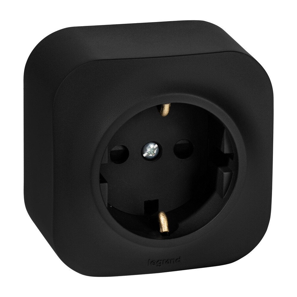 Розетка Legrand Quteo накладная черная со шторками (782476)