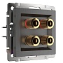 Акустическая розетка с четырехпроводным подключением предназначена для передачи качественного стереосигнала с ресивера на устройство для воспроизведения звука, а винтовые клеммы помогают создать надежное соединение. Электроустановочное изделие используется в квартирах, частных домах, коммерческих помещениях и устанавливается рядом с ресивером, усилителем и колонками для более удобного подключения аудио техники. Скрытая установка аудио розетки и отсутствие внешних проводов не нарушает эстетический вид интерьера. Механизм с суппортом из нержавеющей стали монтируется в подрозетник и надежно фиксируется с помощью винтов и распорных лапок. Внешняя лицевая панель выполнена из высококачественного поликарбоната, обладающего ударопрочностью и термостойкостью. Встраиваемая акустическая розетка совместима со всеми рамками из коллекций Werkel, это позволяет создавать оригинальные, стилевые и цветовые комбинации.