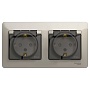 Розетка Systeme Electric (ранее Schneider Electric) серии Glossa (в сборе) двойная с заземлением, шторками и крышкой подходит для сетей 250 В, на ток 16 А. – Изделие со степенью защиты IP44 обеспечит безопасность использования в ванной и на кухне. – Заземляющий контакт обеспечивает дополнительную защиту от удара электрическим током. При наличии заземления электрический потенциал уходит в землю, защищая человека. – Выполнена из материала PС+ASA, стойкого к УФ-излучению и появлению царапин.