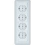 Розетка четырехместная Systeme Electric (ранее Schneider Electric) Blanca (открытой установки, цвет белый) с заземлением и со шторками, с монтажной стальной пластиной предназначена для сетей до 250 В на ток до 16 А. – Четырехместная розетка позволяет подключить четыре устройства в одном месте. – Заземляющий контакт обеспечивает дополнительную защиту от удара электрическим током. При наличии заземления электрический потенциал уходит в землю, защищая человека.