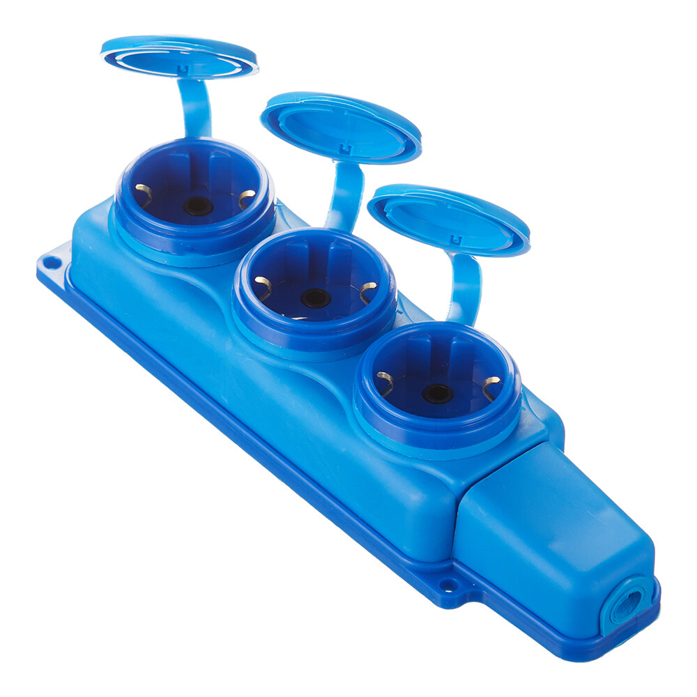 Розетка штепсельная Svet тройная с заземлением IP44 настенная синяяТовар добавлен в корзину