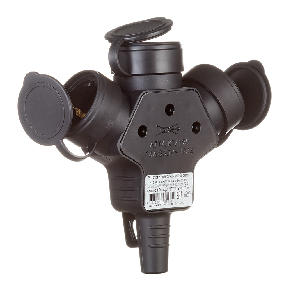 Розетка штепсельная Svet тройная с заземлением IP44 черная