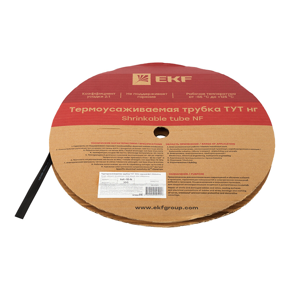 Трубка термоусадочная EKF ТУТ 10/5 мм черная (100 м)