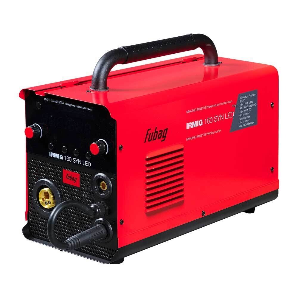 Сварочный полуавтомат Fubag Irmig 160 Syn Led – высокопроизводительный инверторный аппарат с ярким LED-дисплеем. Выбор методов сварки MMA, MIG/MAG, TIG Lift. Имеет 11 встроенных синергетических программ. Оснащен ярким, хорошо читаемым LED дисплеем с индикацией сварочного тока, напряжения и коррекции напряжения. Аппарат работает в распространенном диапазоне сварочного тока 15-160 А с проволокой диаметром от 0,6 до 1 мм, катушкой весом 5 кг и диаметром 200 мм. Передняя панель оснащена LED-дисплеем, регуляторами силы тока и скорости подачи проволоки, что позволяет быстро и просто выбирать режимы и оптимальные параметры сварки. Оснащен евроразъемом (Euro) для быстрого и безопасного подключения сварочной горелки. Купив сварочный инвертор Irmig 160 Syn Led, вы получите в коробке фирменную горелку Fubag 150 А и газовый шланг, а также кабель с электрододержателем и кабель заземления. Продолжительность включения (ПВ) составляет 20% при 40°С (в соответствии с европейским стандартом EN60974-1). Сварочный полуавтомат обладает легкой сменой полярности для работы с самозащитной проволокой. Эффективная система охлаждения, а также встроенная функция термозащиты с индикацией перегрева гарантируют долговечность и надежность использования аппарата в условиях интенсивной эксплуатации. Все технические характеристики наглядно и подробно указаны на корпусе аппарата.