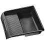 Высококачественная пластмасса, прочная конструкция и специальная форма углов для удобства слива краски. Специальный дизайн зоны прокатки позволяет быстро снять излишки краски с валика.
