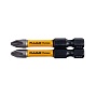 Биты предназначены для закручивания шурупов и саморезов с крестообразным шлицем РZ2. Используются в качестве сменной отверточной насадки с шуруповертами и отвертками. Намагниченные торсионные биты выполнены из высокопрочной легированной стали (S2), что обеспечивает повышенную износостойкость и увеличивает срок службы. Имеют дополнительную лазерную обработку наконечника биты, обеспечивающую идеальную геометрию и точное попадание в шлиц. Торсионная зона позволяет работать ударным шуруповертом. Торсионный тип очень хорошо справляется с тангенциальным ударом (удар по касательной) при вращении. Также торсионные биты хорошо справляются с закручиванием крепежа в особо твердые материалы – при жестком завинчивании (резкая остановка самореза при достижении шляпкой материала, например металла) часть нагрузки принимает на себя скручивающийся торсион, тем самым сохраняя шлицы. Шлицы бит намагничены, поэтому крепеж не выпадает, что повышает удобство при работе с данными битами. Фосфатное покрытие защищает от коррозии, что позволяет сохранять качество и внешний вид оснастки в первоначальном виде в течение долгого времени.
