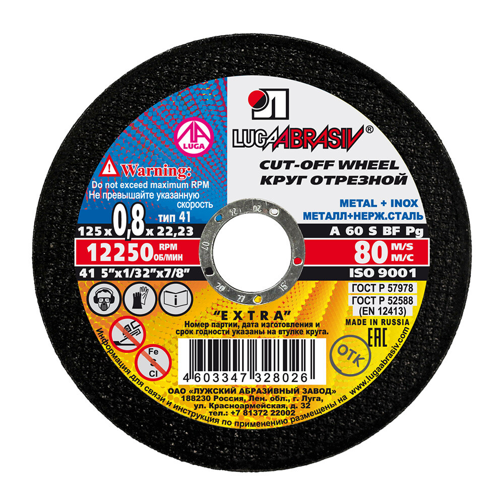 Круг отрезной по металлу Луга Extra 125х22,2х0,8 мм