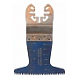 пильное погружное полотно со скругленной режущей кромкой, изготовленное из вороненой высокоуглеродистой стали (Cr-V), обладает повышенным ресурсом. Зубья типа "японский зуб", обеспечивают высокую скорость, эффективность и производительность работ по мягкой древесине. Применяется с многофункциональным инструментом (Реноватором).