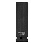 Торцевые насадки для механизированного инструмента по основной области применения практически не отличаются от тех, которые используются с ручным инструментом. Так же, как и в системах сборного слесарно-монтажного инструмента, насадки для механизированного инструмента привязаны к системам по размерам приводов, разделены на предметы для обслуживания внутренних и внешних рабочих профилей. Основные отличия кроются в материалах и технологиях, применяемых при производстве ударных насадок. Главное требование – устойчивость к постоянным динамическим нагрузкам, которая достигается применением специальной стали. Её основным легирующим элементом является молибден, придающий материалу свойства, обеспечивающие компромисс между твердостью и прочностью. Защитное покрытие, применяемое при изготовлении – фосфатирование, придает инструментам матовый черный цвет. Такое покрытие необходимо для дополнительной защиты изделий от коррозии, улучшения твердости контактных поверхностей и износостойкости. Торцевые головки глубокие (удлиненные) 1/2"DR применяются при обслуживании нагруженных и осложненных резьбовых соединений на относительно высоких шпильках и заглубленных деталях. Головки изготовлены из хромомолибденовой стали в соответствии со стандартом DIN 3129.