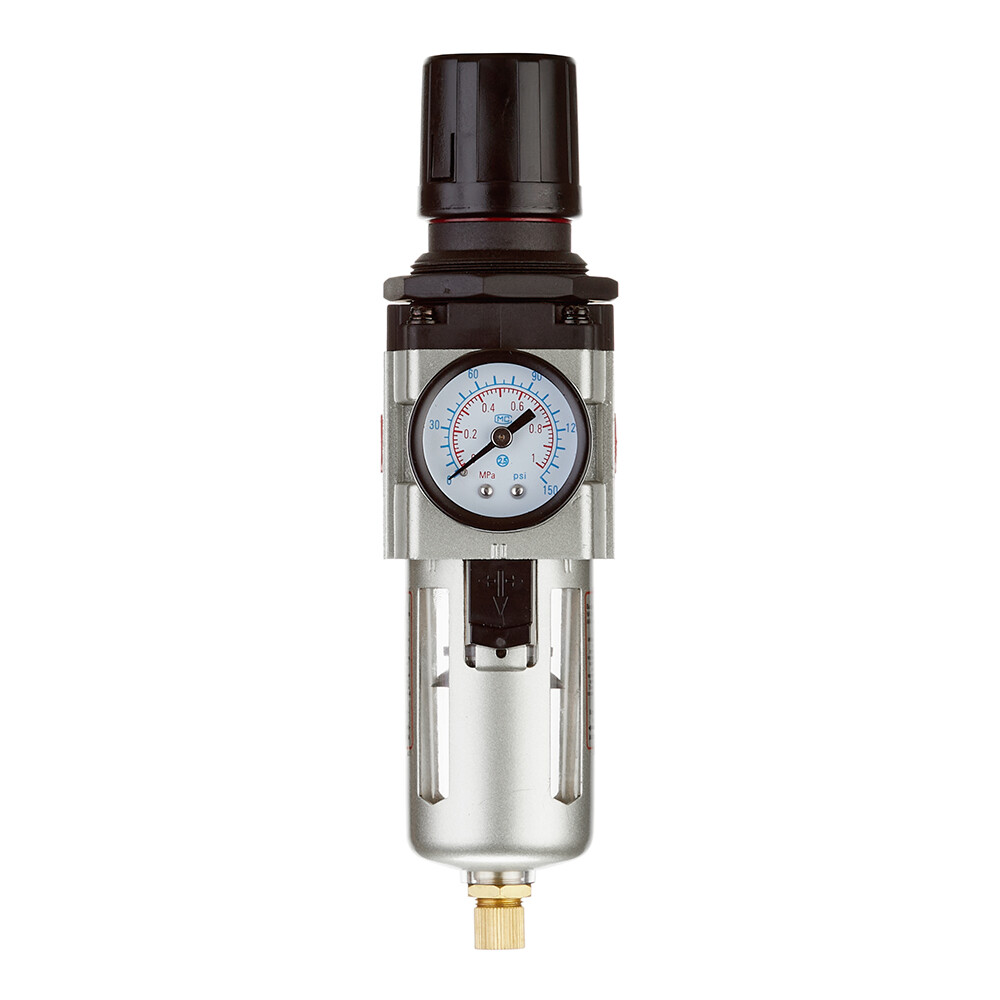 Фильтр обеспечивает управление рабочим давлением в пневмосистеме, вторичную вентиляцию, стравливание при превышении рабочего давления. Применяется для очистки сжатого воздуха. На приборе располагается манометр, предназначенный для измерения давления. Пропускная способность 2000 л/мин. Фильтр имеет внутреннюю резьбу 1/4, при помощи которой крепятся соединительные элементы пневматической магистрали.