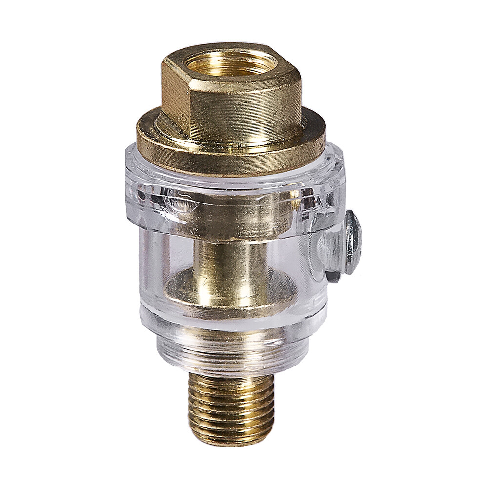 Минилубрикатор, наружная резьба 1/4" обеспечивает регулярное поступление смазки в пневматическую систему. Наличие лубрикатора позволяет предотвратить поломку рабочих деталей пневмооборудования.