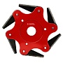 Позволяет эффективно срезать жесткостеблистые растения (лопух, борщевик, сорняки, мелкий кустарник и т.д.). Подходит для использования строго на редукторных электрических и бензиновых триммерах (с объемом двигателя более 35 см³), которые предполагают работу с режущим диском с посадочным диаметром 25,4 мм (модели с прямым валом/штангой). Диск целиком выполнен из металла и устойчив к повреждениям от ударов о землю и камни. Это позволяет использовать его на участках «загрязненных» камнями и прочим мусором.
