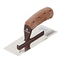 Предназначена для высококачественной декоративной отделки поверхности минеральными штукатурками. Хромированное полотно из нержавеющей стали трапециевидной формы, устойчивое к истиранию. Радиально сточенные закруглённые края для сложных техник разглаживания. Запатентованное крепление специальными болтами. Прорезиненная пробковая эргономичная ручка с зажимной гайкой М8, которая предотвращает вращение ручки.