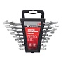 Набор рожковый ключей Matrix предназначен для закручивания резьбовых соединений, изготовлены из хромованадиевой стали. Твердость материала рабочей части ключа 45 HRC (требования ГОСТ – 45–51 HRC). Имеют полированное хромоникелевое покрытие. Поставляются в комплекте с трапециевидным пластмассовым держателем. Ключи гаечные двусторонние с открытым зевом предназначены для монтажа демонтажа резьбовых соединений.