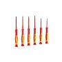 Предназначен для работ с клеммными колодками, в электрошкафах, распределительных коробках, реле, выключателях, ремонте электроники, под напряжением до 1000 В. Комплект поставляется в пластиковом кейсе с подвесом, в котором удобно хранить и транспортировать инструмент.