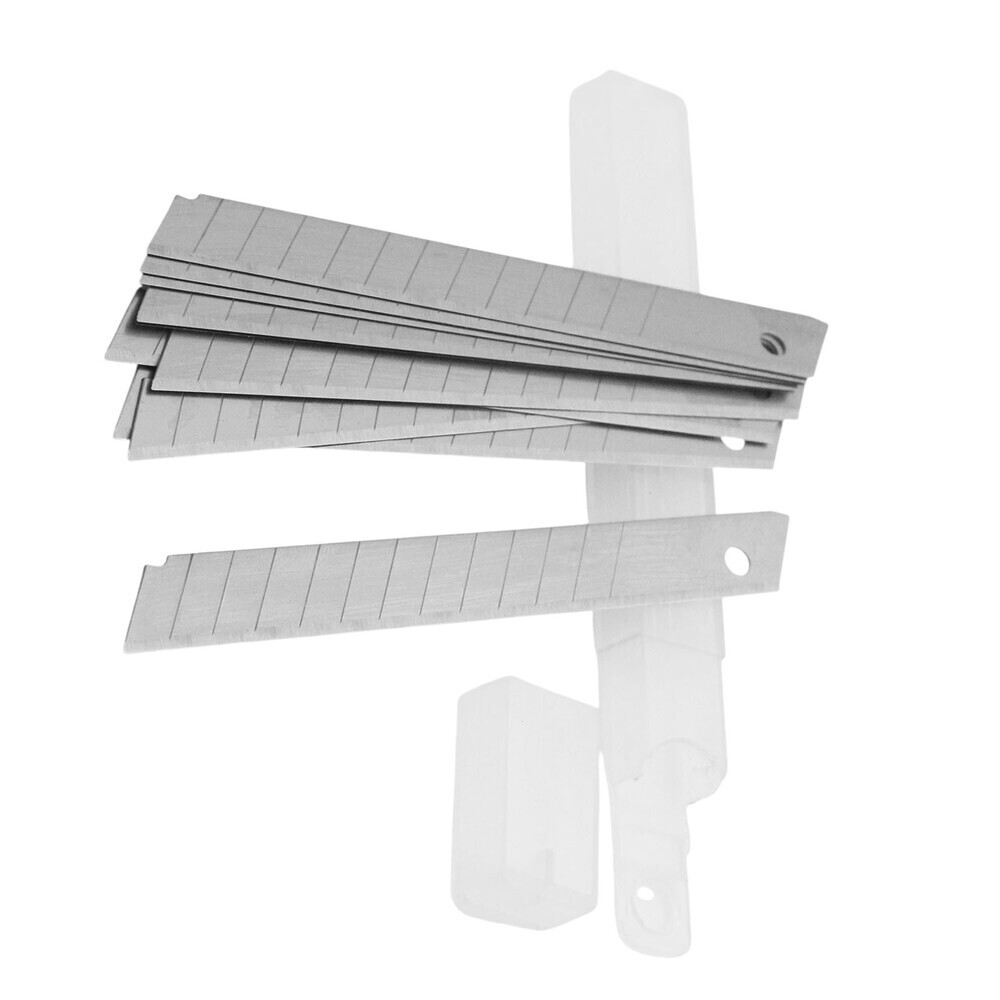 Предназначены для разрезания бумаги, картона, пленки, ткани, резины. Набор включает в себя 10 сегментированных лезвий для канцелярских и строительных ножей в контейнере. Каждое лезвие имеет засечки для надлома заступившегося сегмента. Изготовлены из высокоуглеродистой стали, имеют долгий срок эксплуатации.
