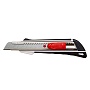 Предназначен для разрезания бумаги, картона, пластика, ткани. Лезвие ножа имеет лазерную заточку, создающую ровную и прочную режущую кромку. Направляющая из нержавеющей стали обеспечивают безопасную работу – лезвие не смещается и не раскалывает корпус ножа. Прочный ABS-пластик с прорезиненными вставками обеспечивает комфортную работу. Нож выдержит падение на твердую поверхность с высоты более 5 метров. Автоматический замок – при нажатии кнопки лезвие сдвигается, после отпускания кнопки фиксируется.