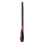 Предназначен для обработки и обтачивания деталей из дерева, металла, пластика. Полукруглый тип жала удобен для расширения и обтачивания отверстий, для опиловки круглых деталей различного радиуса, плоскую сторону используют для обработки плоских поверхностей. Жало длиной 200 мм изготовлено из углеродистой стали Т12. Эта сталь сочетает в себе лучшие характеристики углеродистой и нержавеющей стали ее твердость и стойкость к коррозии значительно выше, чем у традиционной углеродистой стали. Пластмассовая рукоятка с резиновым покрытием (ABS+TPR) придает прочность и удобство при работе.
