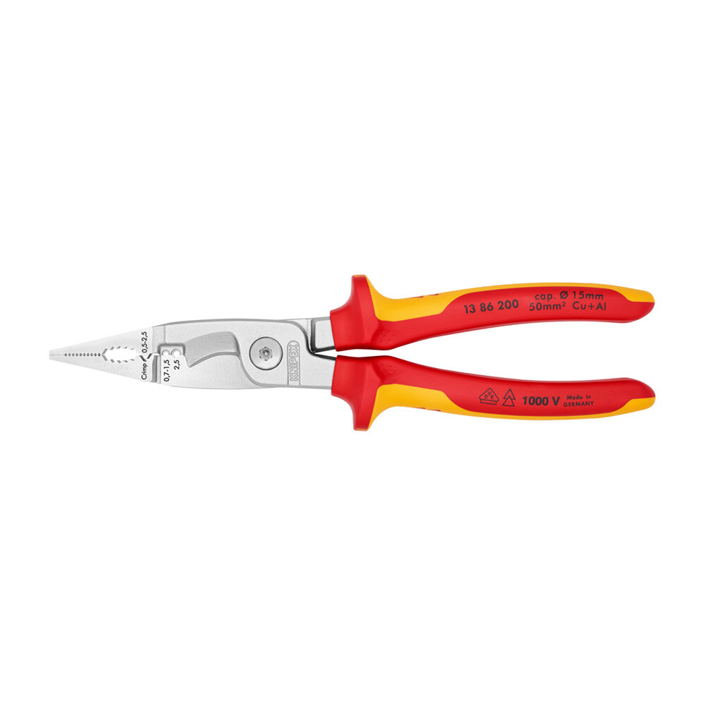 Предназначены для различных работ. Mногофункциональные клещи для электромонтажных работ; для захвата плоского и круглого материала, гибки, удаления заусенцев, резки кабеля, удаления изоляции и опрессовки контактных гильз.