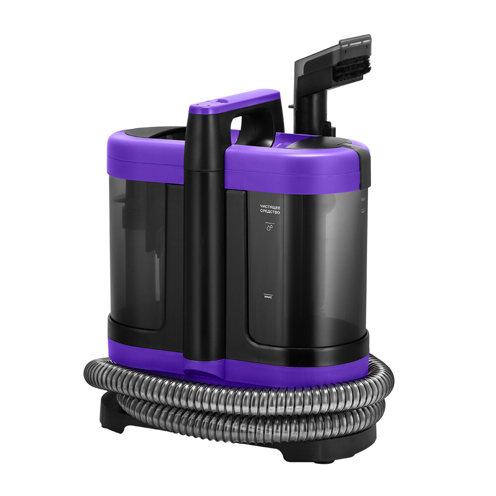 Моющий пылесос для ковров и мягкой мебели КТ-5213 поможет очистить обивку дивана, кресел, сидений в машине и другой мягкой мебели, а также ковры и ковровые покрытия. Пылесос автоматически подает чистую воду и моющее средство на очищаемую поверхность, а затем всасывает воду с пылью и другими загрязнениями. Пыль и грязь оседают в воде в резервуаре для грязной воды. КТ-5213 создан для легкой и эффективной уборки. Он прост в использовании благодаря интуитивно понятным кнопкам и индикации. Поддерживать чистоту стало проще с удобными резервуарами и продуманным управлением. Насадка с ворсовой щеткой хорошо подходит для чистки ковров или въевшихся загрязнений. Она выполнена из прозрачного пластика, чтобы было видно, как много грязи собирает моющий пылесос. У пылесоса небольшой размер и вес, а также есть ручка, держась за которую можно с легкостью перемещать прибор. У моющего пылесоса предусмотрены держатель шнура и держатель шланга, поэтому его можно компактно сложить и удобно хранить. В резервуаре для чистой воды есть специальный резервуар для чистящего средства. Интенсивность подачи чистящего средства регулируется. Когда резервуар для грязной воды будет наполнен выше максимально допустимого уровня, датчик уровня воды отключит пылесос.