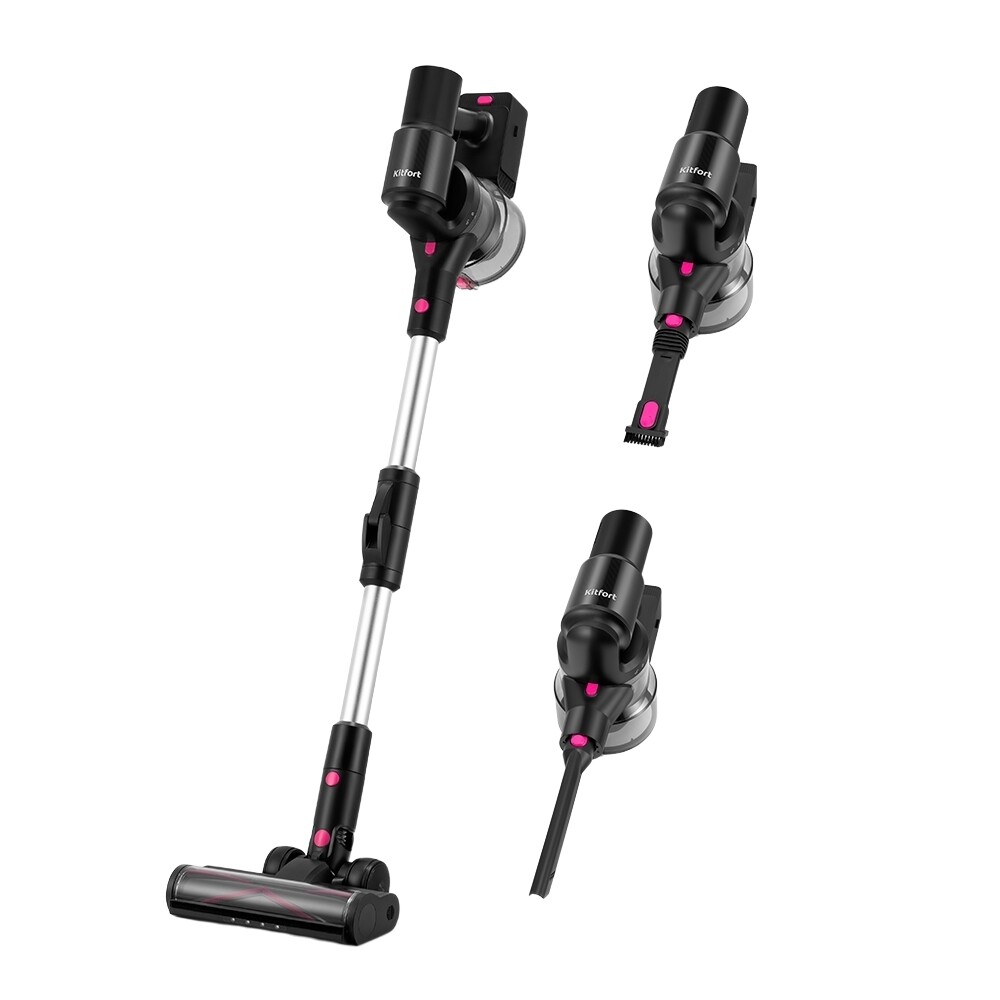 Беспроводной вертикальный пылесос очень удобен при локальной уборке. Он компактен, всегда под рукой и готов к работе. Благодаря работе от аккумулятора не нужно включать вилку в розетку, провода не мешают под ногами. Конструкция «2 в 1» предусматривает наличие ручного пылесоса. Им можно пропылесосить углы и плинтусы, обивку мебели, пыль со шкафов, шкафчики на кухне или в гостиной, книжные полки, коврики в автомобиле или багажник. Пылесос комплектуется напольной насадкой с турбощеткой, которая поможет качественно справиться с очисткой гладких поверхностей и ковровых покрытий с коротким ворсом. Светодиодная подсветка напольной щетки сделает уборку комфортной даже в темных местах. Насадка «2 в 1» состоит из ворсовой щетки и узкой насадки. Ворсовая щетка может использоваться для чистки твердых поверхностей, ковров и мебели. Узкая насадка удобна для чистки мягкой мебели. Щелевая насадка позволит добраться до труднодоступных мест. Пылесос оборудован современным циклонным фильтром, обеспечивающим хорошую очистку. Крышка пылесборника легко открывается, а пыль из него вытряхивается очень просто. Внутри пылесборника находится фильтр тонкой очистки и фильтр грубой очистки. Удлинительная трубка у данной модели гибкая. Чтобы ее можно было сгибать, зажмите фиксатор удлинительной трубки. Чтобы вернуть удлинительную трубку в прямое состояние, выпрямите ее до щелчка. Аккумулятор пылесоса съемный, поэтому его можно заряжать, когда он установлен на пылесос или снят с устройства. База для зарядки одновременно выполняет функцию кронштейна – она крепится к стене, на нее можно установить пылесос, а также закрепить насадки. Все насадки могут крепиться как к удлинительной трубке, так и к моторному блоку с пылесборником.