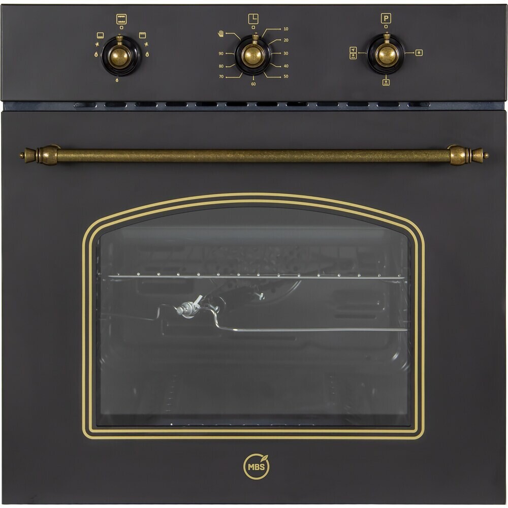 Встраиваемый газовый духовой шкаф DG-607BL черного цвета с металлической фурнитурой бронзового цвета прекрасно впишется в интерьер кухни классического стиля, стиля кантри или прованс. Модель MBS DG-607BL может работать в 4 режимах, включая приготовление на вертеле, управление которыми осуществляется удобными ручками. Объем духовки 62 литра, а процесс ее очищения происходит посредством гидролизной очистки. MBS DG-607BL комплектуется универсальным противнем, решеткой для гриля и вертелом.