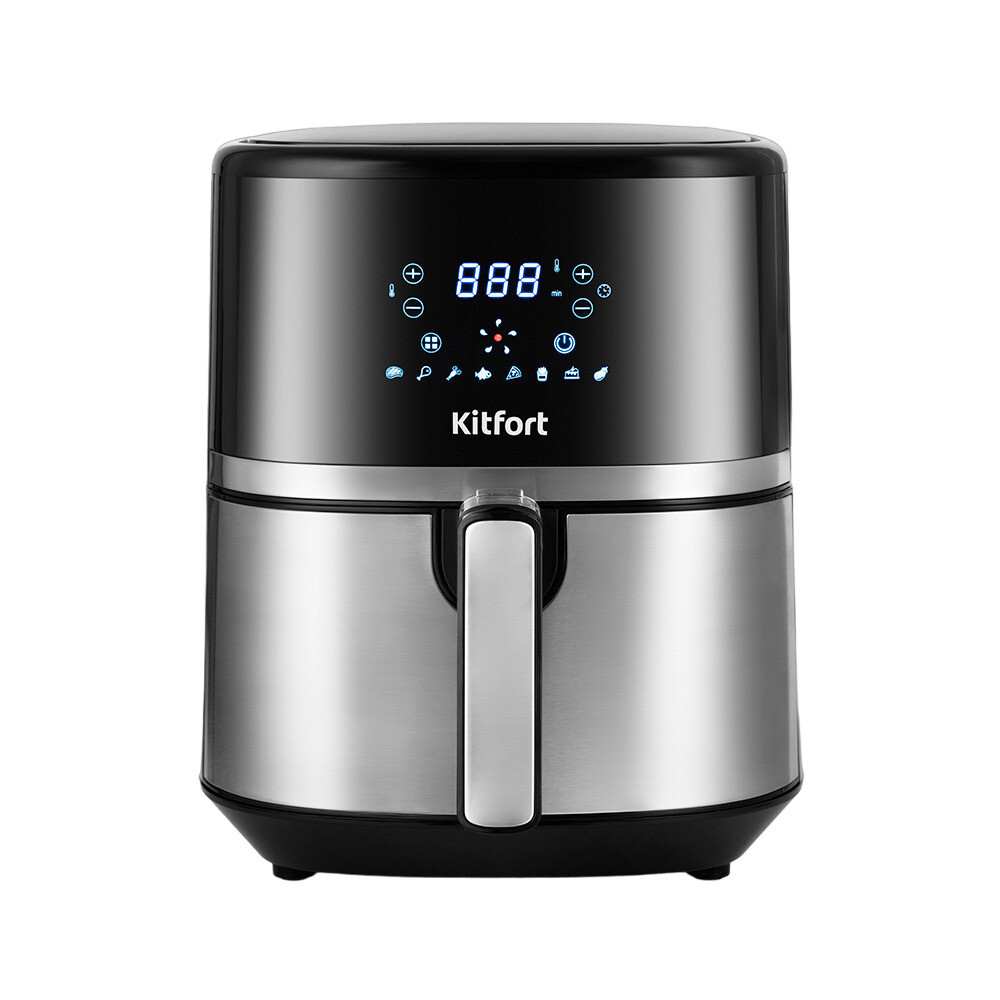 Аэрогриль Kitfort КТ-2221 может использоваться как аэрогриль, а также как аэрофритюрница и духовка и позволяет готовить большинство продуктов с минимальным количеством масла или вовсе без его добавления. Аэрогриль сочетает в себе стильный дизайн и продуманный функционал. Он обладает мощностью 1500 Вт, благодаря чему приготовление не займет много времени. Вместительная корзина на 3,3 л. Многофункциональная панель управления. Аэрогриль имеет 9 автоматических программ, остается только выбрать одну из них: стейк, курица, пицца, выпечка, картофель фри, морепродукты, рыба или овощи. Также возможно задать вручную нагрев от 80°C до 200°C и время приготовления от 1 до 60 минут. Продукты готовятся в специальной корзине, которая вставлена в поддон. Благодаря системе циркуляции горячего воздуха, продукты обжариваются равномерно со всех сторон, получаясь нежными внутри и с хрустящей корочкой снаружи. Во избежание случайного выпадения корзины из поддона, на ручке корзины имеется специальная кнопка для ее извлечения. Съемный поддон и корзина имеют антипригарное покрытие, благодаря чему они легко чистятся после использования, а блюда можно готовить практически без добавления масла.