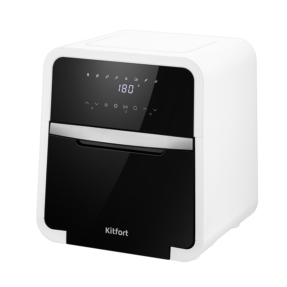 Аэрогриль КТ-2290 объединяет в себе функции не только аэрогриля, но и сушилки для овощей и фруктов. Благодаря системе циркуляции горячего воздуха, продукты обжариваются равномерно со всех сторон На панели управления аэрогриля расположены не только режимы, но и функции настройки – «Подсветка», «Настройка температуры», «Настройка времени», изменения которых можно увидеть на дисплее. Функция «Вращение» запускает вращение для вертела. В комплекте для КТ-2290 идут 3 поддона, отдельный поддон для жидкостей, чтобы сохранить стенки и дно чистыми, а также вертел и специальная ручка, чтобы его удобно было достать из горячего аэрогриля.
