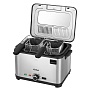 Фритюрница КТ-6240 предназначена для приготовления продуктов в слое горячего масла. Приготовление происходит быстро, так как продукт обжаривается со всех сторон сразу. В крышке фритюрницы имеется окно, через которое вы сможете следить за готовностью блюда. Крышка прибора съемная, что упрощает уход за фритюрницей. В крышке находится фильтр, который сдерживает распространение запаха и маслянистых испарений во время жарки. В комплекте три корзины для жарки – одна большая и две малые. Для удобства хранения корзины для жарки имеют съемные ручки. Две ручки по бокам прибора позволяют легко переносить фритюрницу. С помощью регулятора температуры вы можете устанавливать желаемые температуру приготовления. Индикатор нагрева показывает, когда масло нагрелось до выбранной температуры.