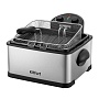 Фритюрница предназначена для приготовления продуктов в горячем масле. Прибор позволит вам в домашних условиях приготовить любимые блюда – картофель фри, куриные крылышки, овощи, рыбу, мясо и морепродукты в кляре и без него. Жаренные во фритюре продукты обычно содержат меньше масла, чем продукты, обжаренные на сковороде. Управление фритюрницей осуществляется с помощью регуляторов на корпусе. В комплекте идут 3 корзины – одна большая на 3,8 л и две маленькие на 1,5 л. С их помощью вы сможете готовить несколько блюд одновременно. Ручки корзин снимаются, что делает их хранение более компактным. Внутри фритюрницы находится чаша с антипригарным покрытием, общей емкостью до 9,5 л. Вы можете готовить продукты в чаше без использования корзин. В данной модели съемный нагревательный элемент, который при погружении в чашу не достает до дна. Остатки продуктов, оседая на дне чаши, попадают в холодную зону с пониженной температурой масла, таким образом, они не пригорают. Крышка и чаша съемные, что упрощает чистку и обслуживание. В крышке находятся фильтры, которые сдерживают распространение запаха и испарений во время жарки. В крышке фритюрницы имеется смотровое окно, через которое вы сможете следить за готовкой.