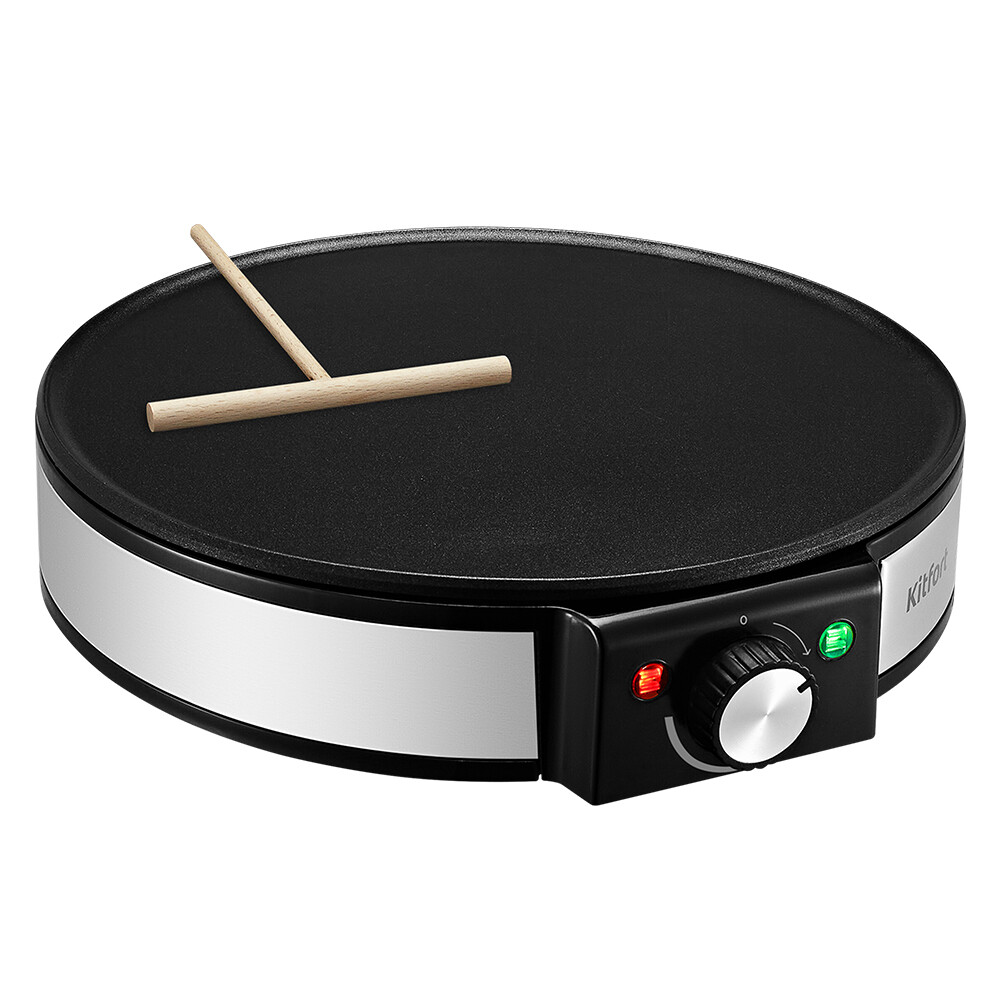 С помощью блинницы КТ-1678 можно быстро испечь блины. Максимальный диаметр блина составляет 30 см. Блинницу не нужно устанавливать на плиту, поэтому можно готовить на любой удобной ровной поверхности, устойчивой к высоким температурам. С помощью палочки для распределения теста блин получается идеально ровной и той толщины, которую хотите вы. Регулятор нагрева позволяет регулировать температуру нагрева блинницы. Благодаря антипригарному покрытию готовить можно с минимальным количеством масла: масло добавляется в тесто, поэтому при выпечке оно не разбрызгивается в разные стороны. Для удобства блинница оснащена креплениями для хранения шнура питания. Прорезиненные ножки устойчиво фиксируют прибор на поверхности.