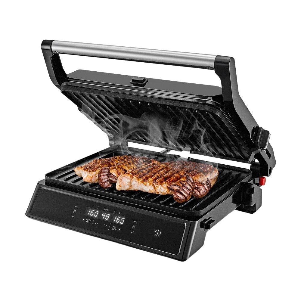 Панели этого гриля съемные, что облегчает их чистку. Вы можете снять – достаточно нажать на специальную кнопку. Это не только упрощает уход за устройством, но и продлевает срок его службы, сохраняя гриль в идеальном состоянии после каждого использования.