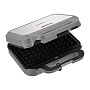 Вафельница «3 в 1» предназначена для приготовления бельгийских вафель, бутербродов, панини, сэндвичей, гренок, тостов, овощей, сосисок и многих других блюд. Компактные размеры вафельницы дают возможность взять ее с собой на дачу или в поездку. Вафельница оснещана тремя парами съемных панелей – панели для приготовления вафель, панели для бутербродов и ребристые панели для гриля. Прибор оснащен индикаторами работы и нагрева, а также регулятором, который является ручкой термостата и позволяет настраивать температуру от 80°С до 240°С. Конструкция предусматривает приготовление продуктов с закрытой крышкой. При таком приготовлении продукты находятся между двух нагреваемых панелей и готовятся сразу с двух сторон. Зажим на ручке удерживает крышку прибора в закрытом состоянии. Антипригарное покрытие помогает продуктам не прилипать в процессе приготовления и позволяет готовить с добавлением минимального количества масла. Ручка прибора не нагревается во время использования. На нижней части корпуса прибора расположен держатель шнура, обеспечивающий удобство переноски и хранения. Зажим на ручке удерживает крышку вафельницы в закрытом состоянии, что делает транспортировку и хранение более удобными.